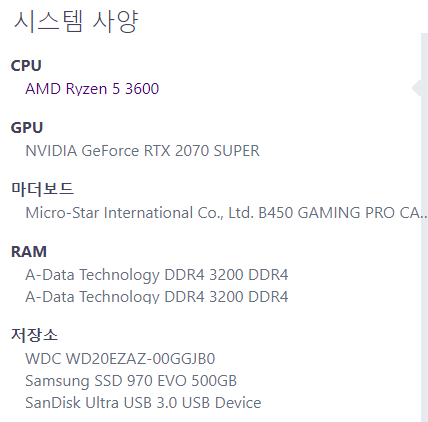 나중에 컴 업글을 위해 적어두는 내 지금 컴 스펙