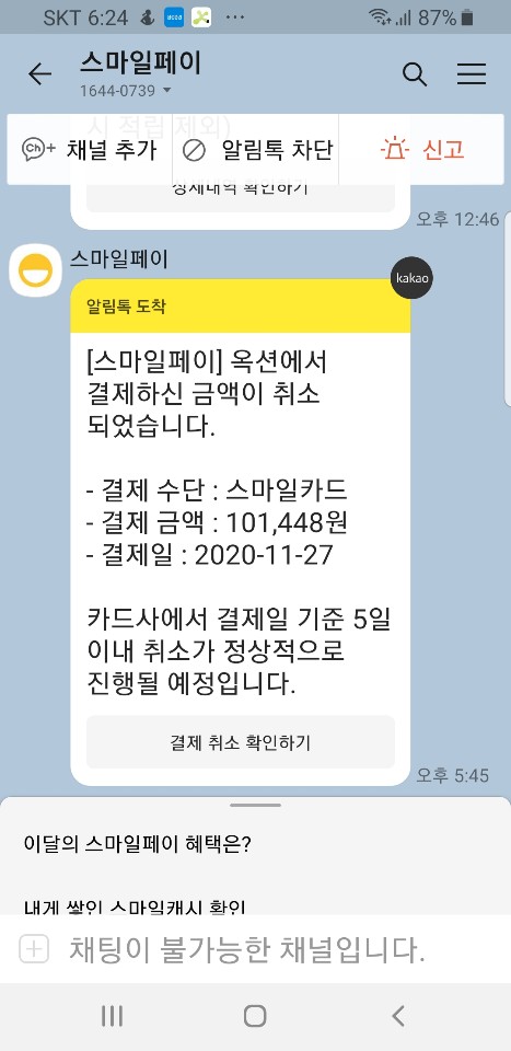 아 오늘 갑자기 카드 결제 취소됐다고 알림옴.... ㅠㅠㅠㅠㅠㅠㅠㅠㅠㅠ