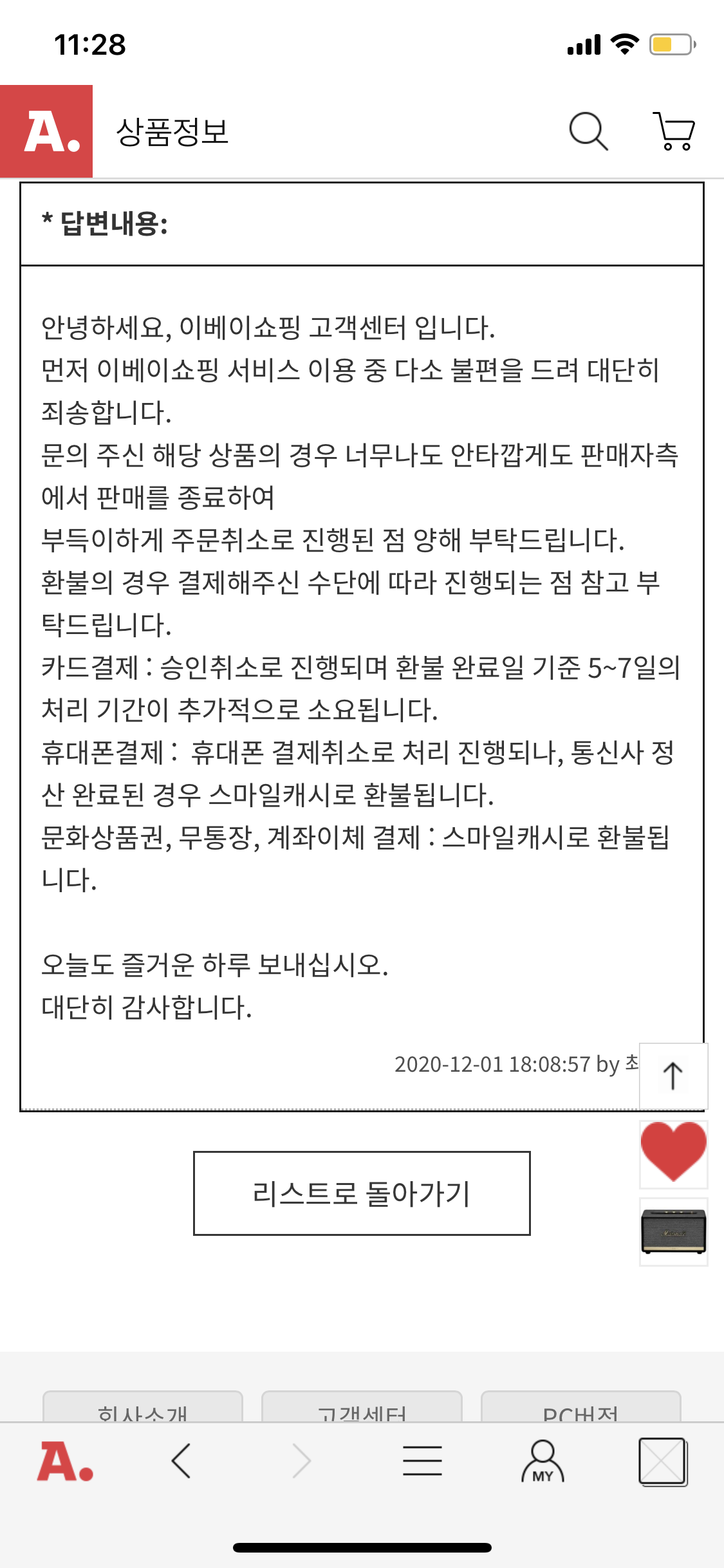 | 마샬 공홈 할인 구매 취소? (2) | 2020.11.30 |