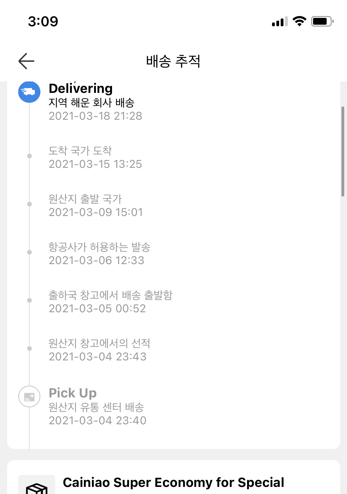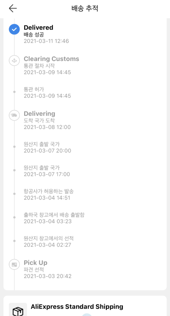 같은날 주문했나? 하루 뒤쯤 주문한거 같은데, 여긴 좀 오래 걸림. 비행기가 아니라 배로 와서 그런가 2주 정도 걸림....