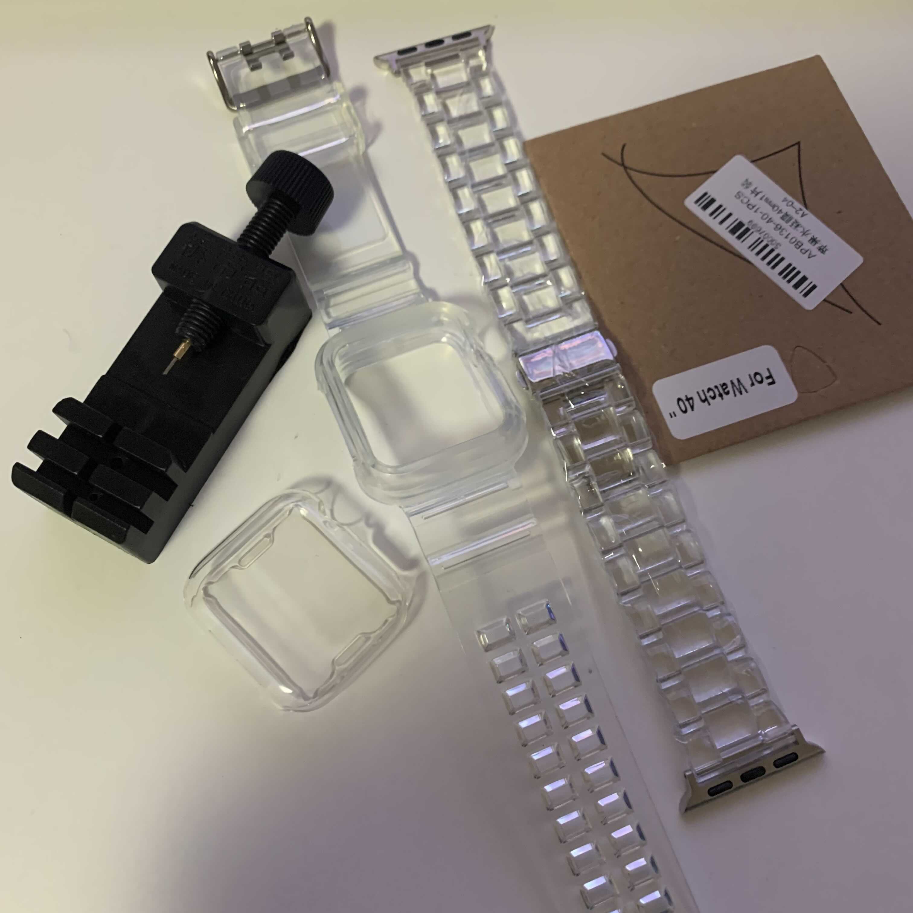 스틸스트랩. 투명 스트랩 다른종류로 2개. 페이스 보호필름 1장 (근데 2장옴) 이렇게 시킴. 저렇게 해서 \15,000 쪼금 넘게 나옴.