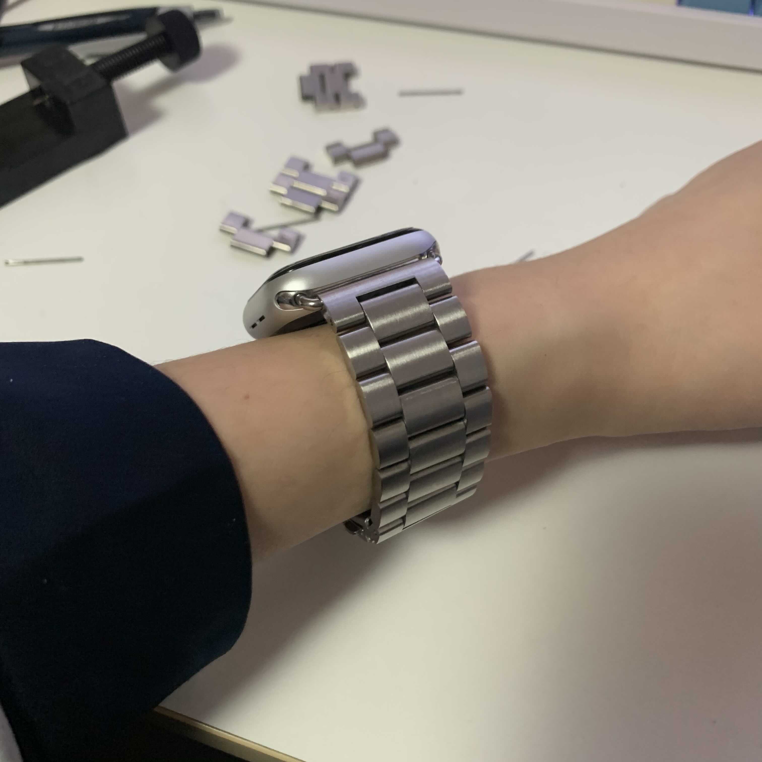아 저 스틸스트랩 줄이다가 저 고리? 반대로 빼서 진짜 난리 쳤는데 어떻게 잘 수습함. 첨에 2개 2개 줄였는데 그래도 헐렁 거려서 뺄수 있는거 다 빼니까 딱 맞는 느낌.
