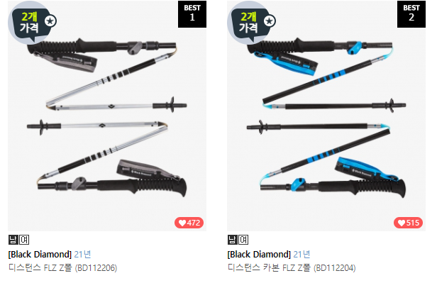 등산스틱 사고 싶은데, 둘중에 고민. 사실 카본으로 사서 내 등산화랑 깔맞춤 하고 싶은데 2만5천원정도 더 비싸고, 오케이몰에서 사이즈가 2종류 밖에 없음.