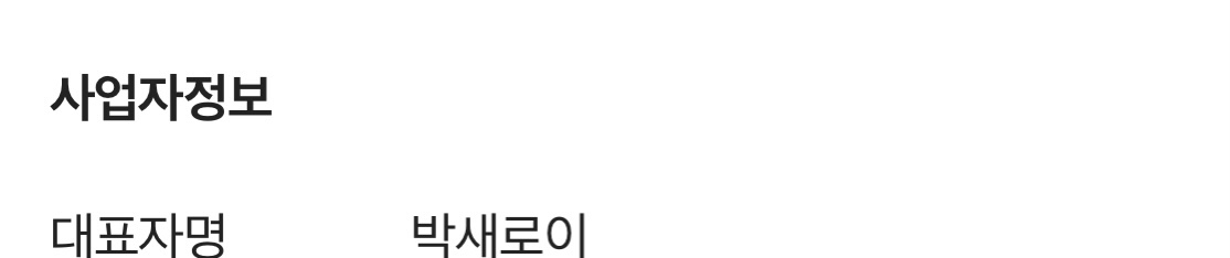 배민 사업자정보에 대표자명도 본인이 원하는대로 등록 할 수 있는건가?? 곱도리탕 먹어보고 싶어서 찾아 보다가 사업자정보 보니까 대표이름이 박새로이라고 되어있어서 신기해서 캡쳐.
