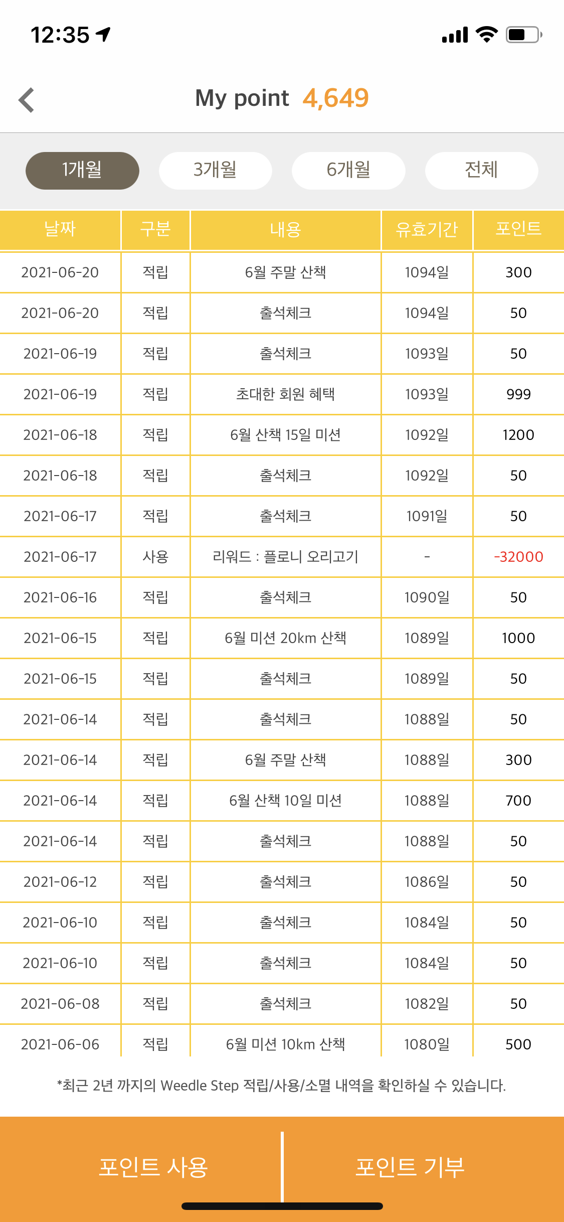 Weedle이라고 강아지 산책시킬때 어플로 산책시작 누르고 산책하면 포인트 쌓이는 어플이 있음. (10분/500m이하는 포인트 적립안됨) 적립된 포인트로 기부를 하거나 포인트 사용해서 제품을 구매할 수 있다!