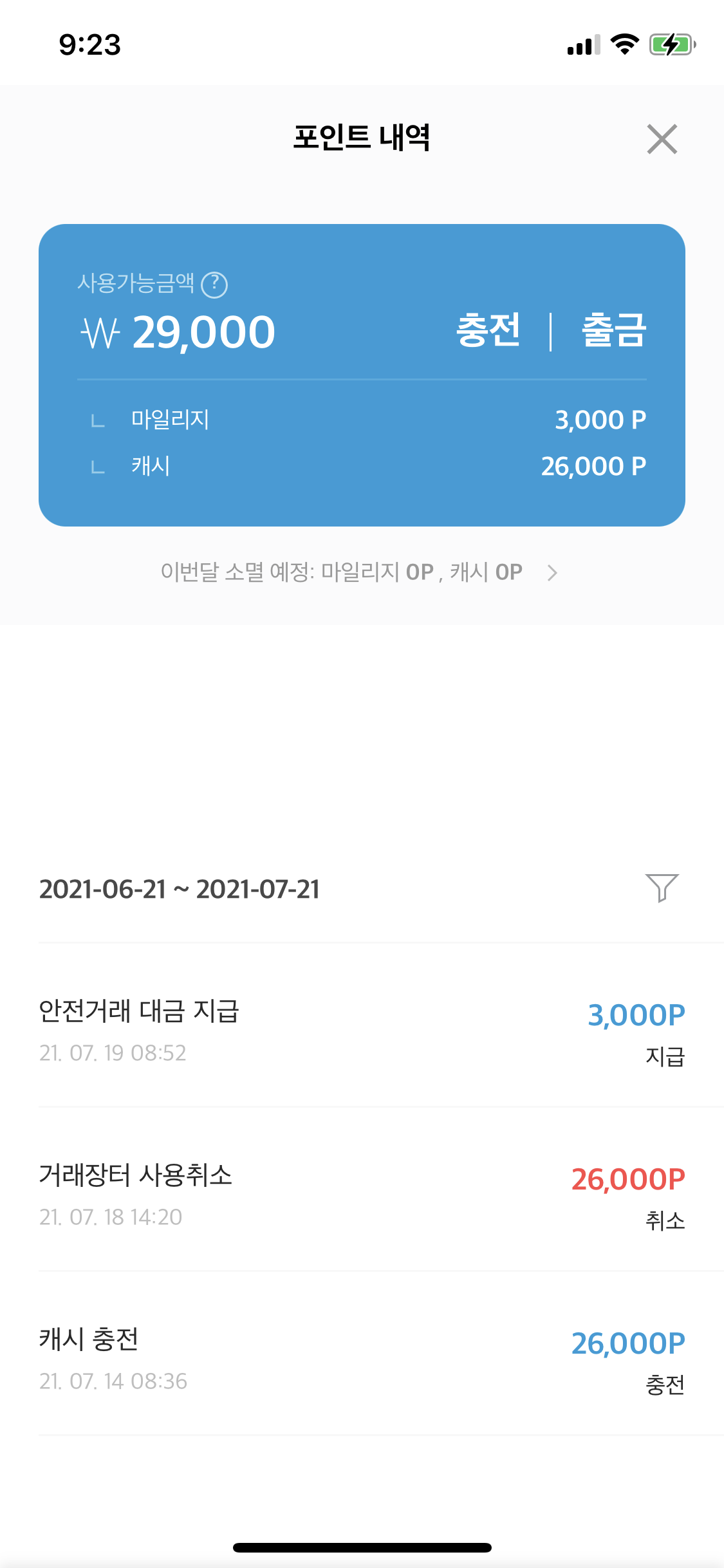 3. 그래도 어플이 중재역할(?)같은걸 이래도 해서 내가 구매확정 누르기 전까진 환불요청 가능하다. 그래서 바로 환불 받긴함. 짜증나서 바로 출금하려고 했더니, 마일리지만 출금가능임,.....그래서 내가 충전한 금액은 캐시로 들어가서 출근 불가능. 여기서 3빡침. 참고로, 출금할때로 3번 이상 출금하면 수수료 있음.