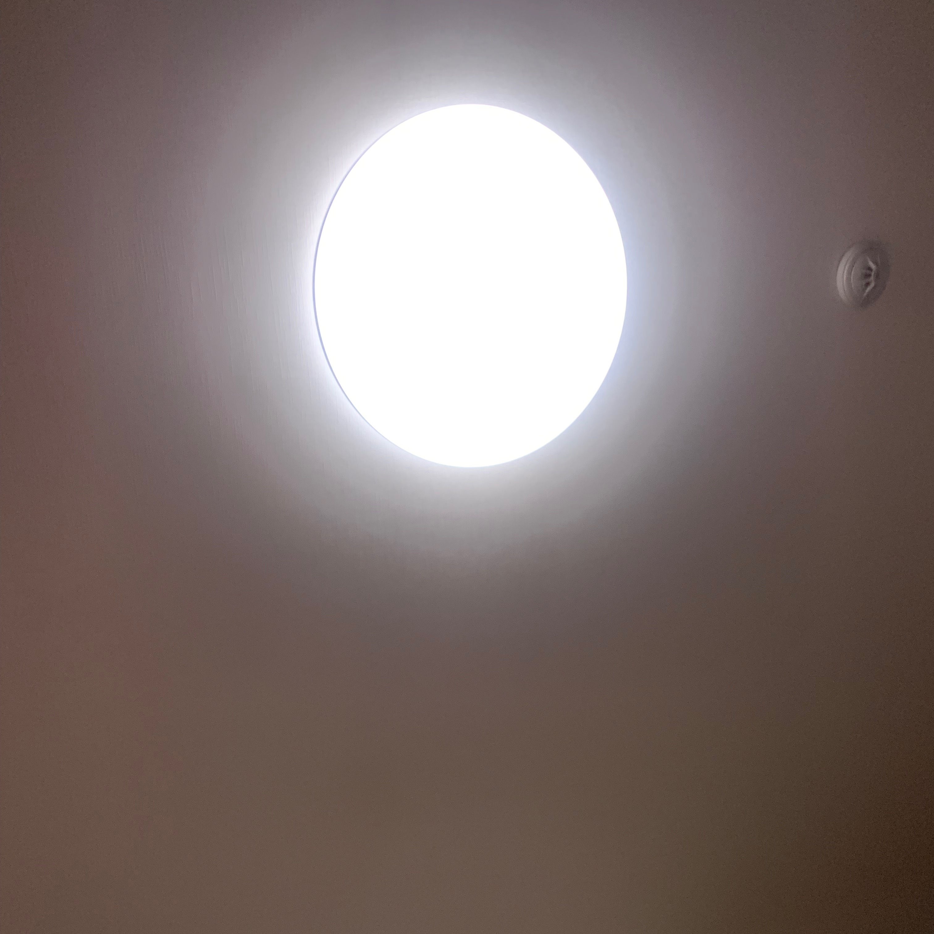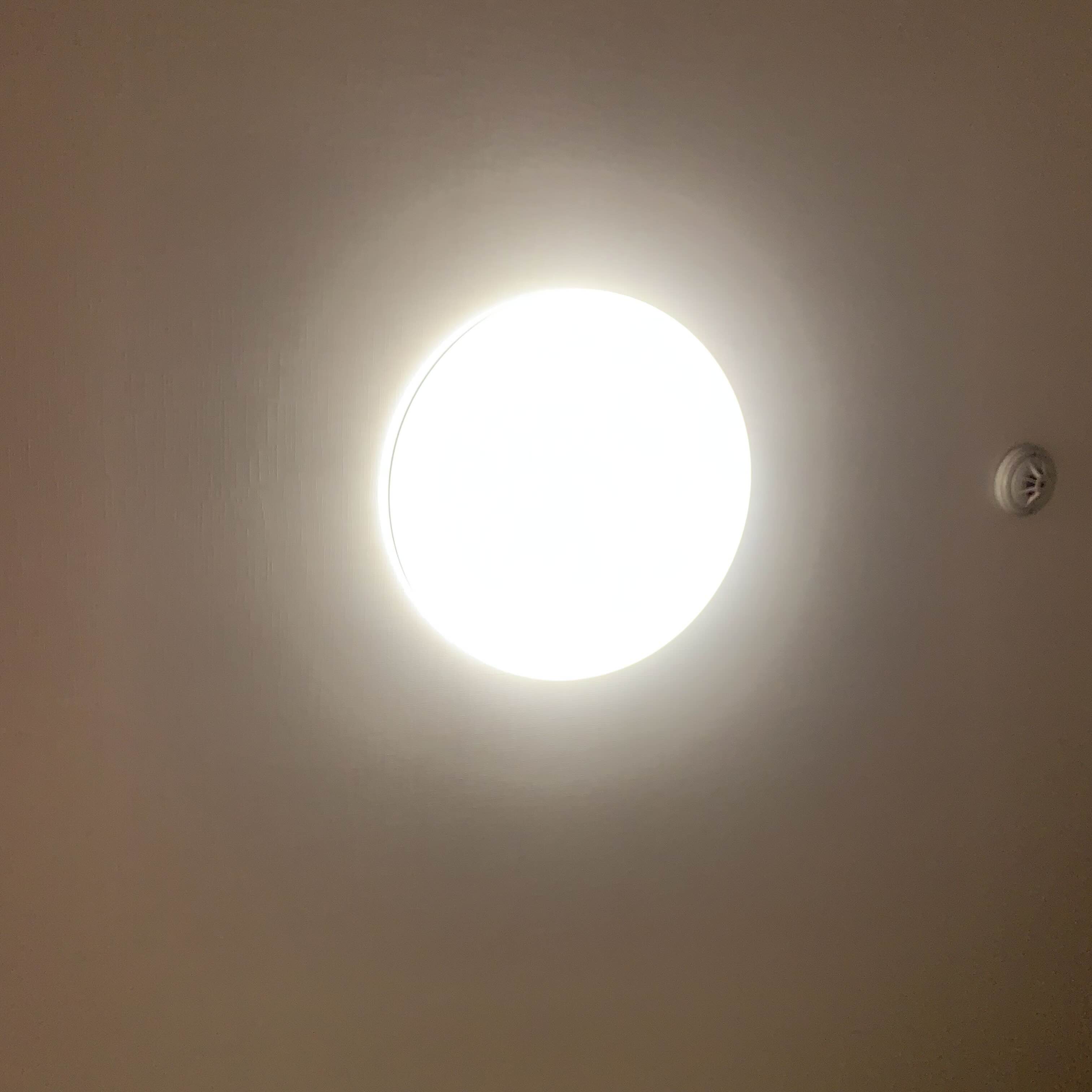 4. 어플로 불을 키고 끄려면 전등 스위치는 항상 켜놔야 함. 이건 딱히 단점이 아닌데, 문제는 어플로 불을 끄면 완전히 꺼지지 않고 아래 사진처럼 불빛이 약하게 있음. 아침엔 햇빛이 있어서 못 느꼈는데 밤되니까 잘 보임. 불빛에 예민한 사람들은 좀 거슬릴듯.