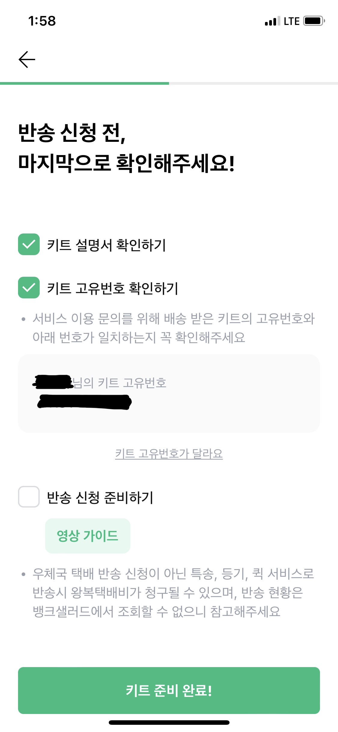 2022/01/06 유전자 검사 키트 수령 및 반송 접수