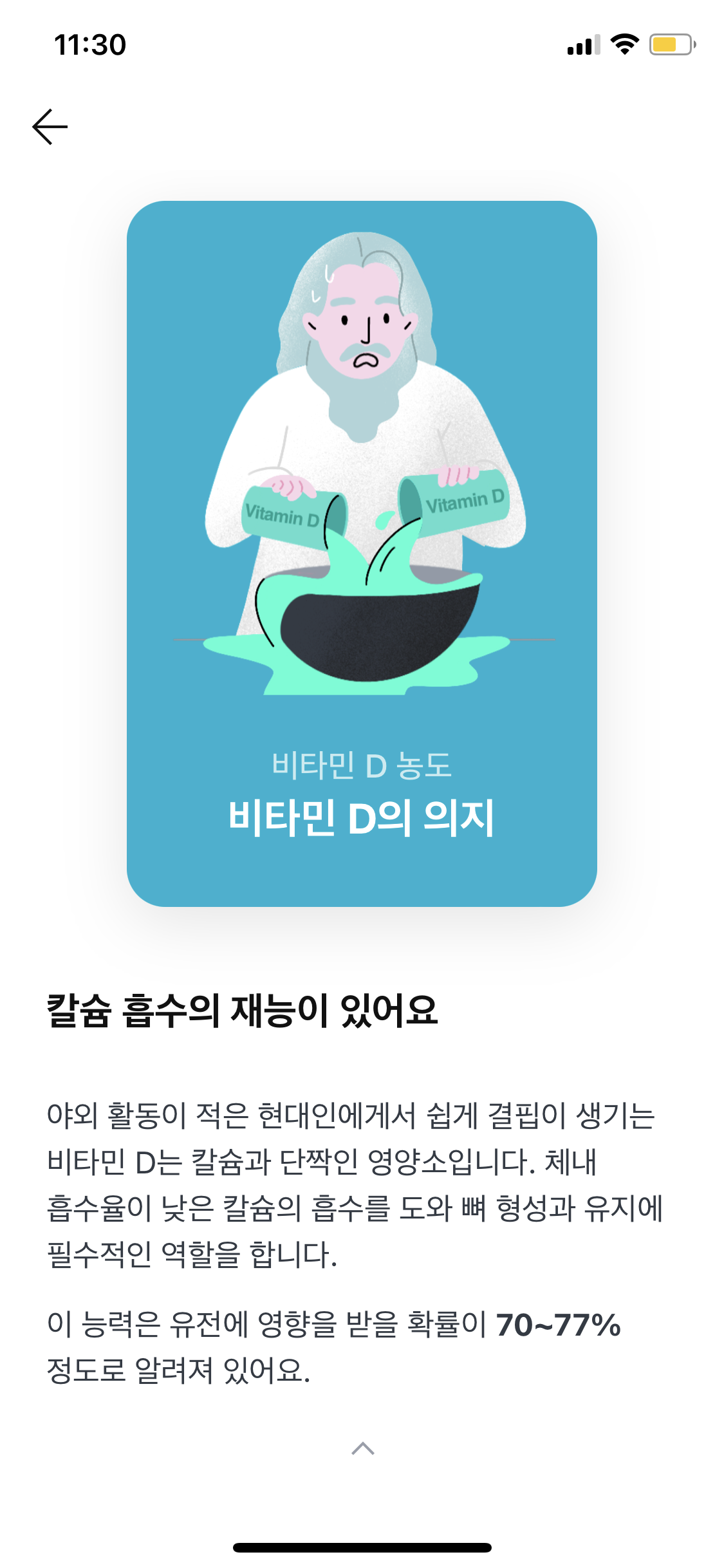 자세한거는 이렇게 뱅샐 어플 이용해서 볼 수 있다. 전에 엄빠도 무슨 미국에 보내는 유전자 검사 했었는데, 그때는 결과가 엄청 두꺼운 책으로 나와서 짱 자세히 적혀 있던데, 이것도 나름 자세하고 그 책자 보다 알아 보기 쉬워서 좋음.