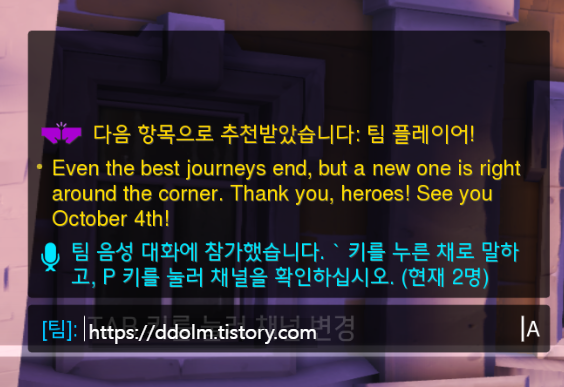 쨌든 이런 아쉬운 마음을 가지고 오버워치1 장례식장에 참가해서 마지막까지 함께 있고자 접속해서 캡쳐좀 했음.