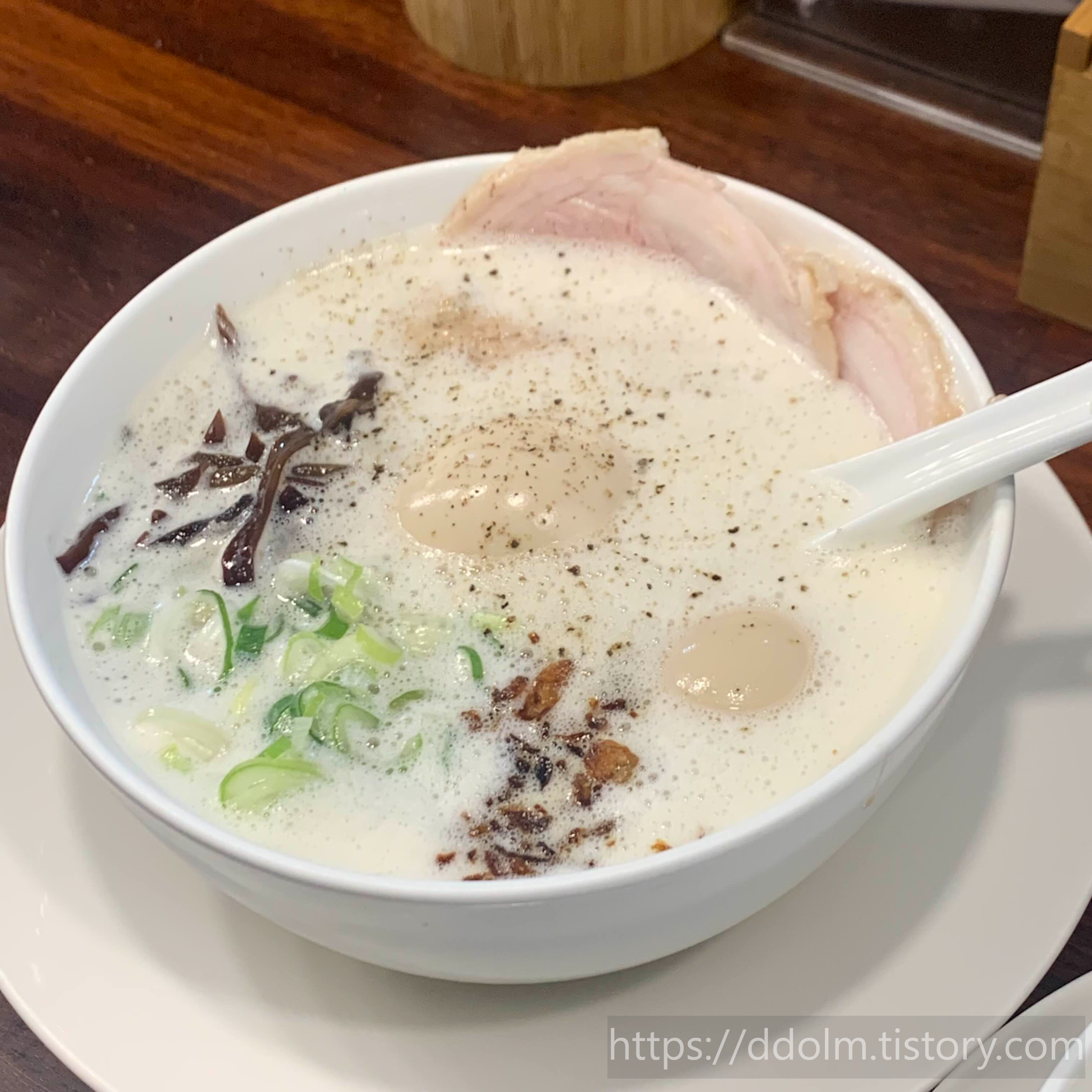 국물은 진짜 찐~한 편이다! 닭육수 향과 맛이 엄청 찐함!