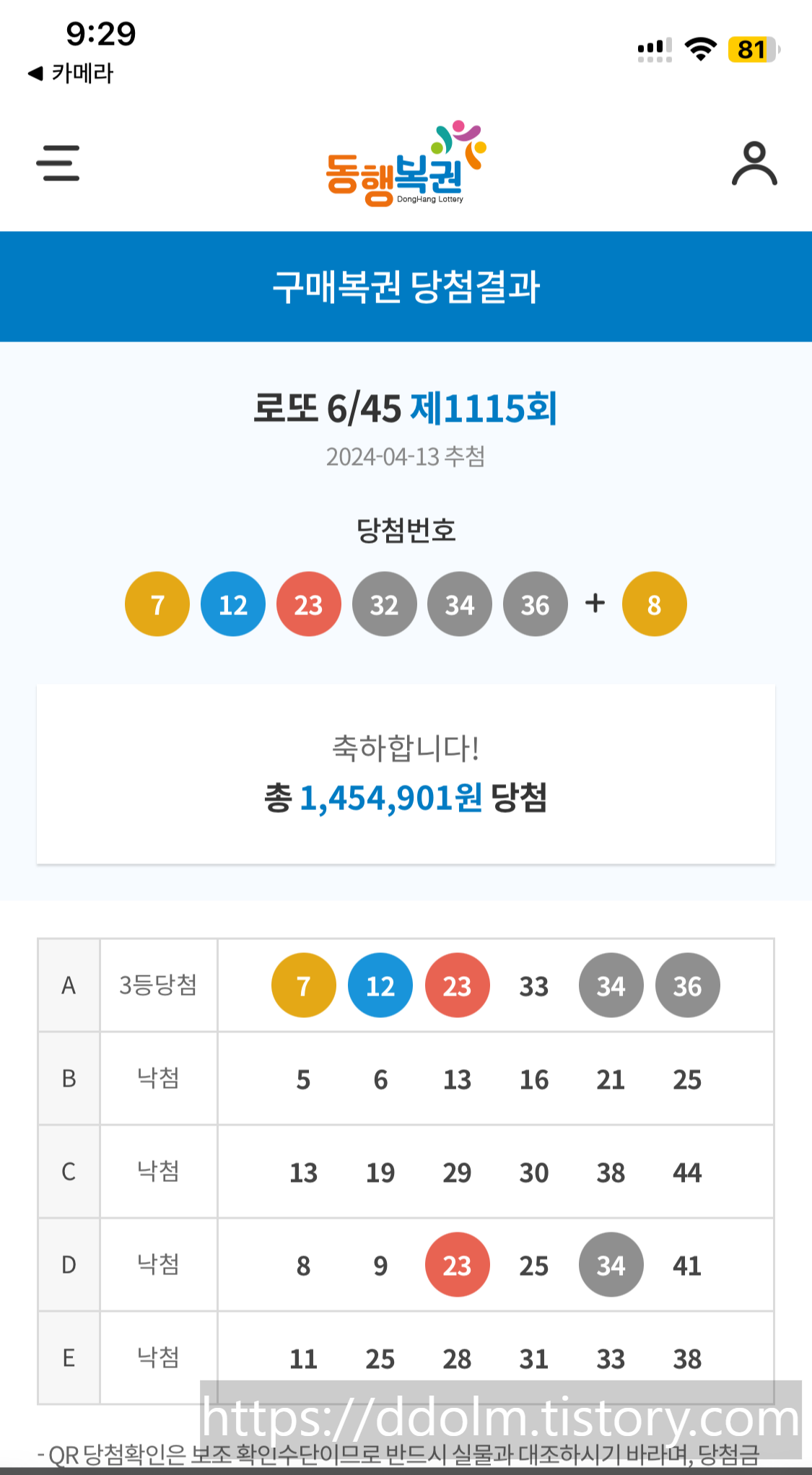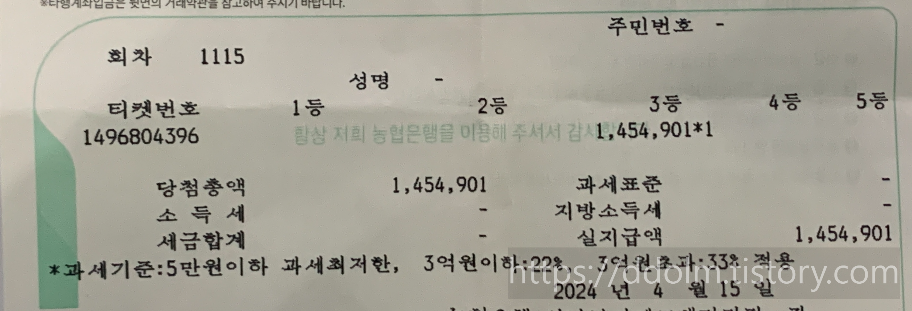 당첨금이 200만원 미만이라서 세금 1원도 안내고 그대로 수령했다!!!