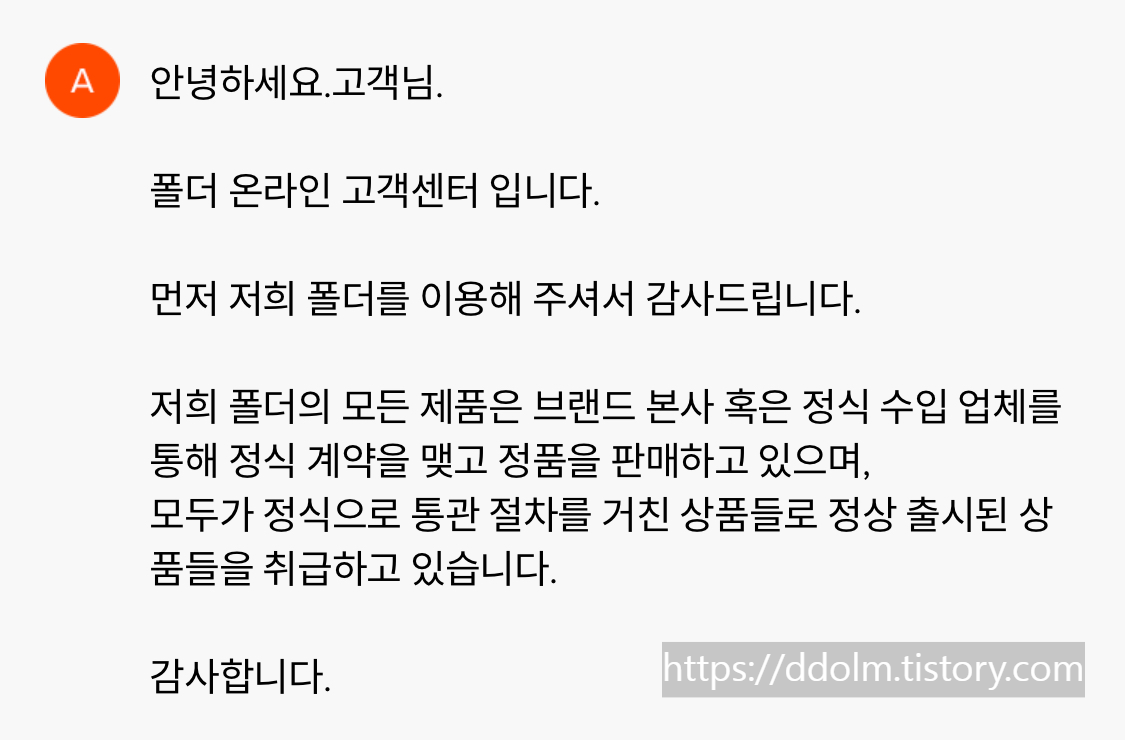 folder는 10단위씩밖에 없어서 문의 했더니, 왜 10단위씩밖에 없는지에 대한 답변은 없고 그냥 정품이라는 말만 있음...