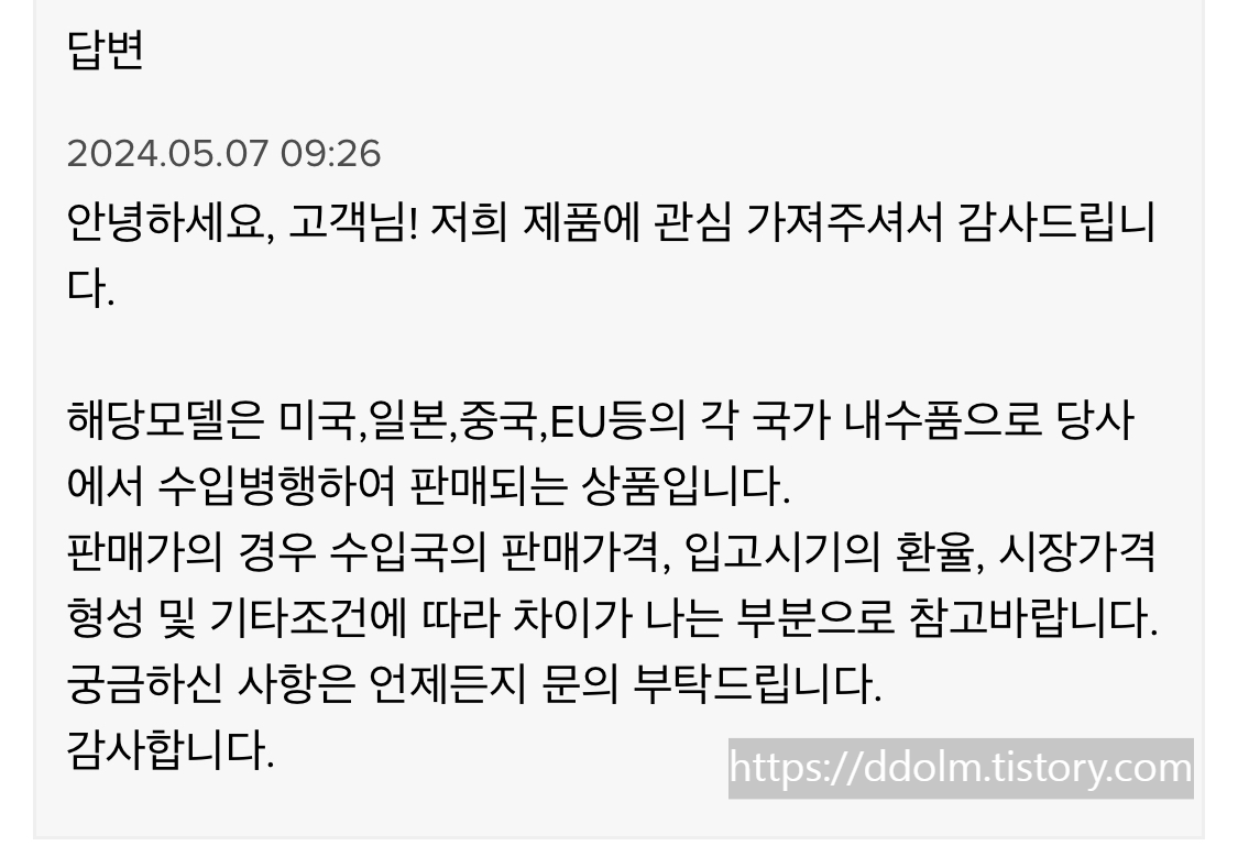 병행수입 제품이라 그 나라 판매 가격/ 환율에 따라 달라서 그렇다고 함.