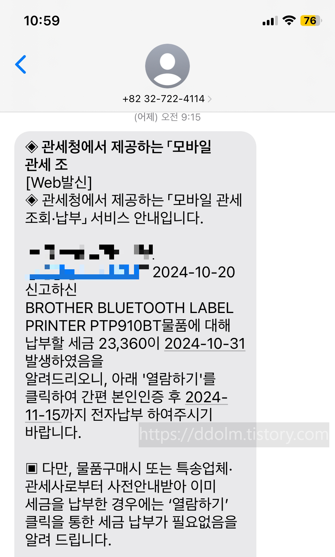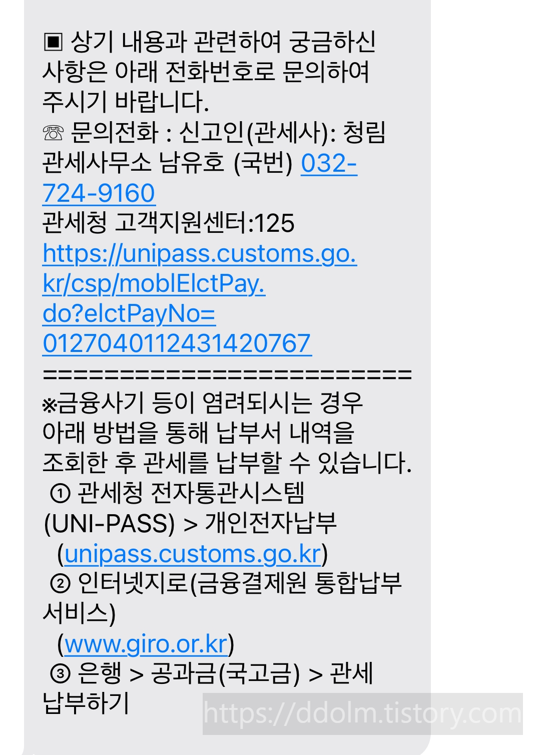 21일 아침에 출근하니까 관세 내라고 인천공항세관(032-722-4114)에서 문자로 옴.