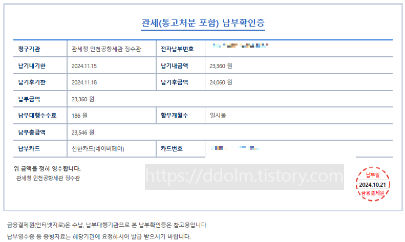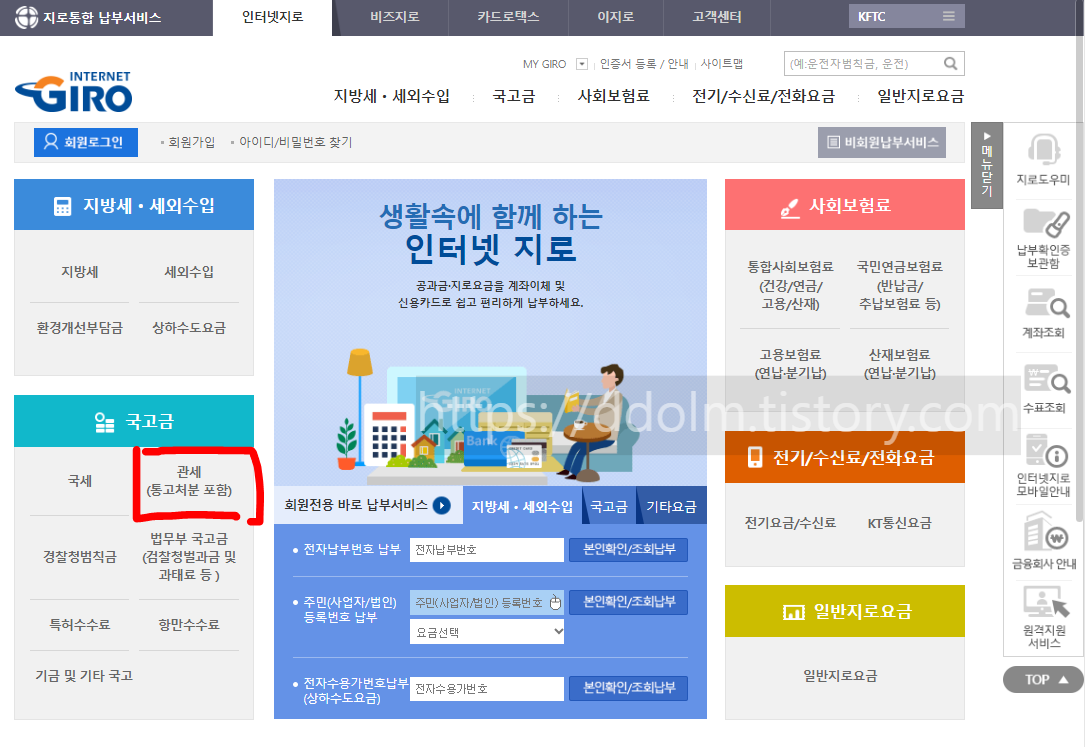 관세 내는 방법 (인터넷 지로 이용)